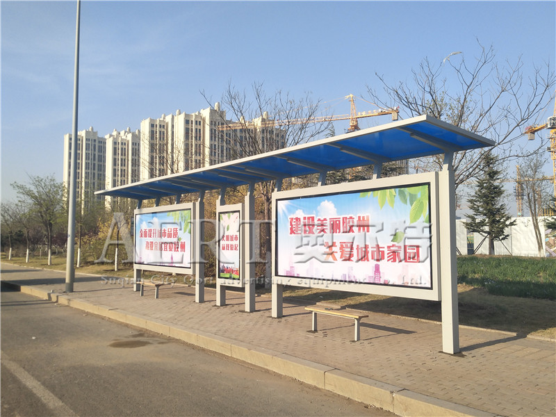 2.候車亭的尺寸規格有嚴格要(yào)求,候車亭的(de)寬度不宜小於2.2米,高度宜(yí)出地麵0.2米,站牌高度不宜大於2.2米。另外,候車亭不得遮擋路燈、交通信號燈,不得影響車輛通行。